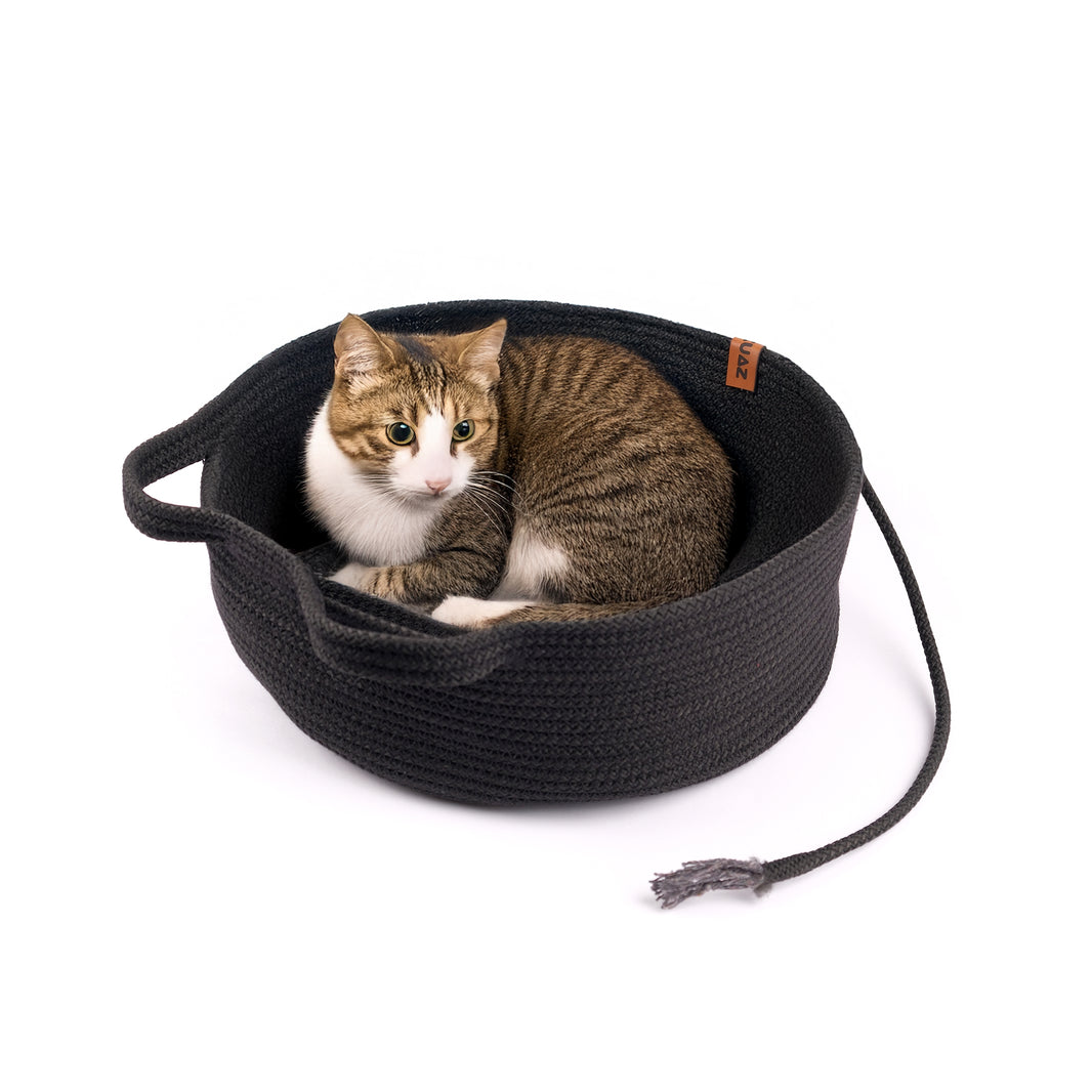 Jute Katzenbett mit Schweif Schwarz