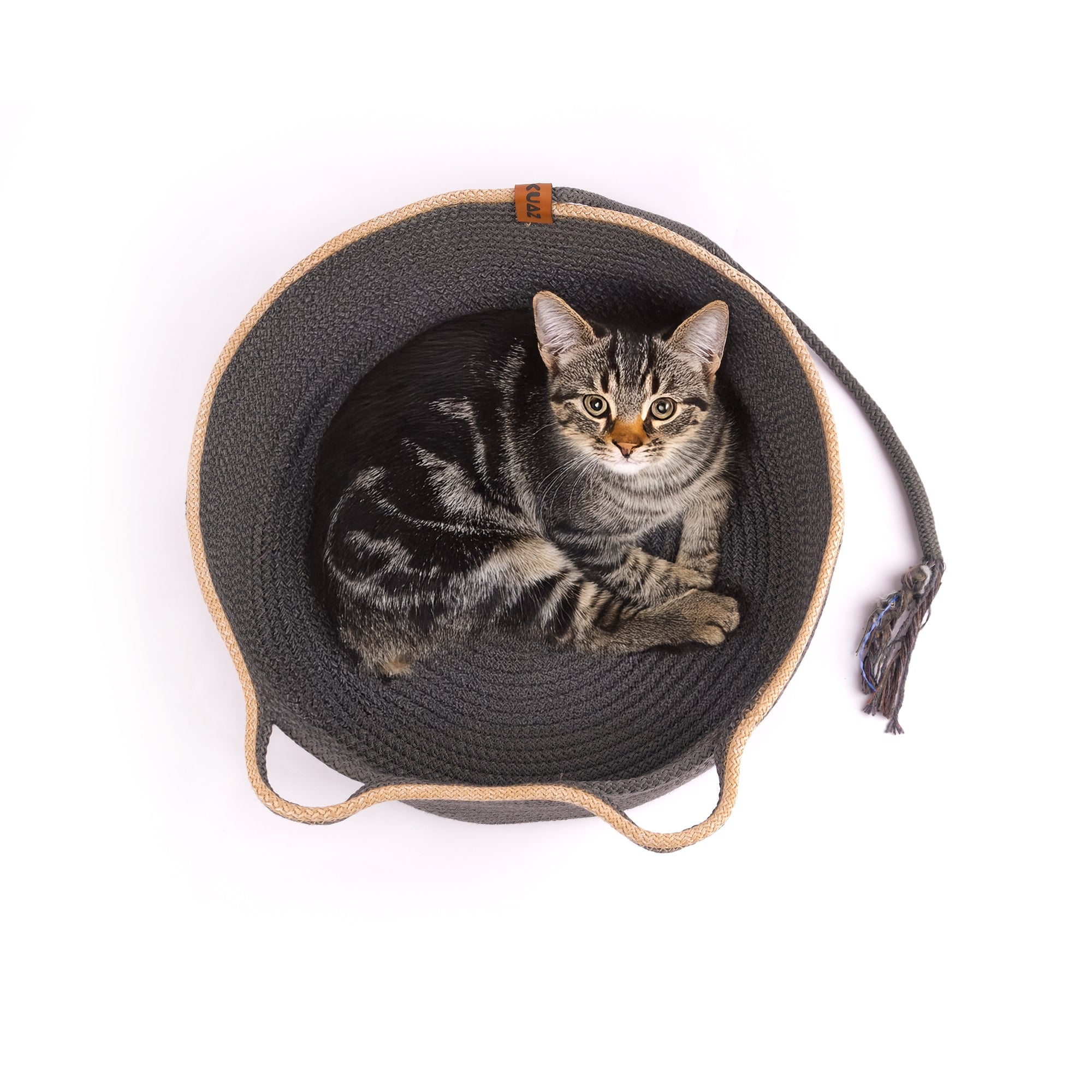 Jute Katzenbett mit Schweif Creme-Anthrazit