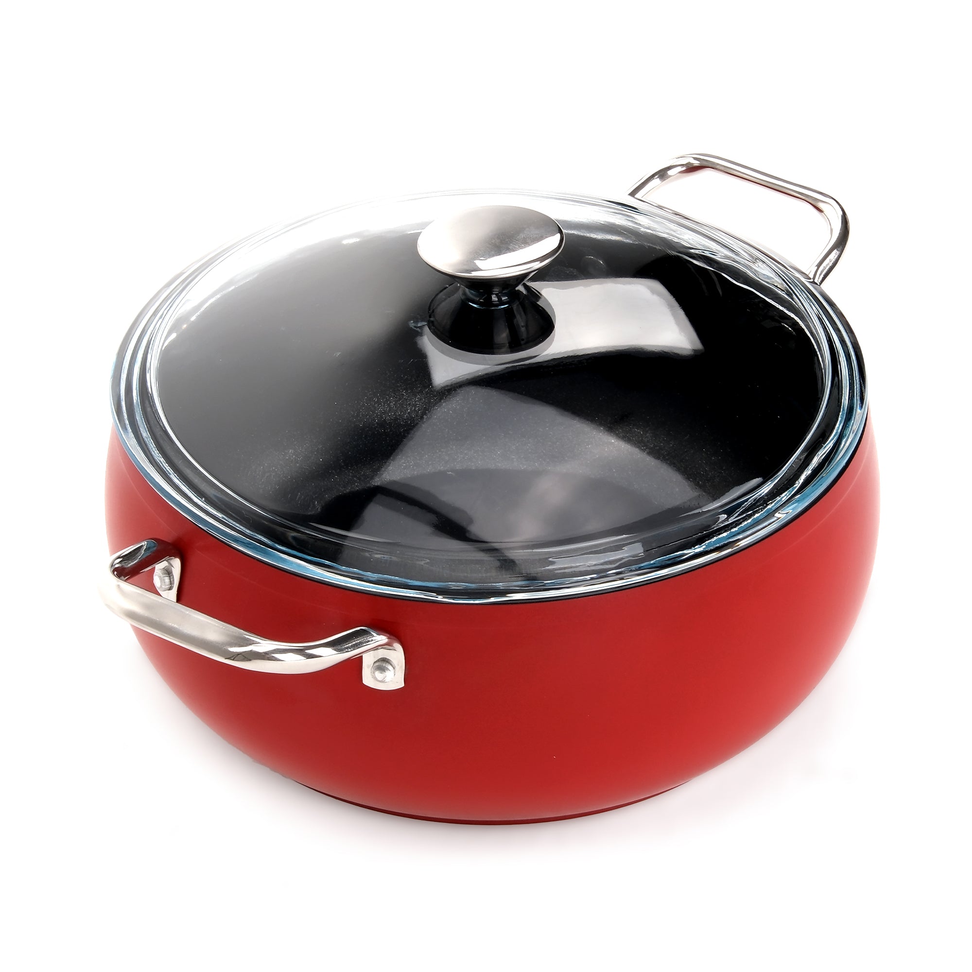 Der hitzebeständige Glasdeckel erlaubt eine optimale Kontrolle des Garvorgangs, ohne den Deckel anheben zu müssen. Die stabilen Metallgriffe bieten sicheren Halt und hohe Langlebigkeit.