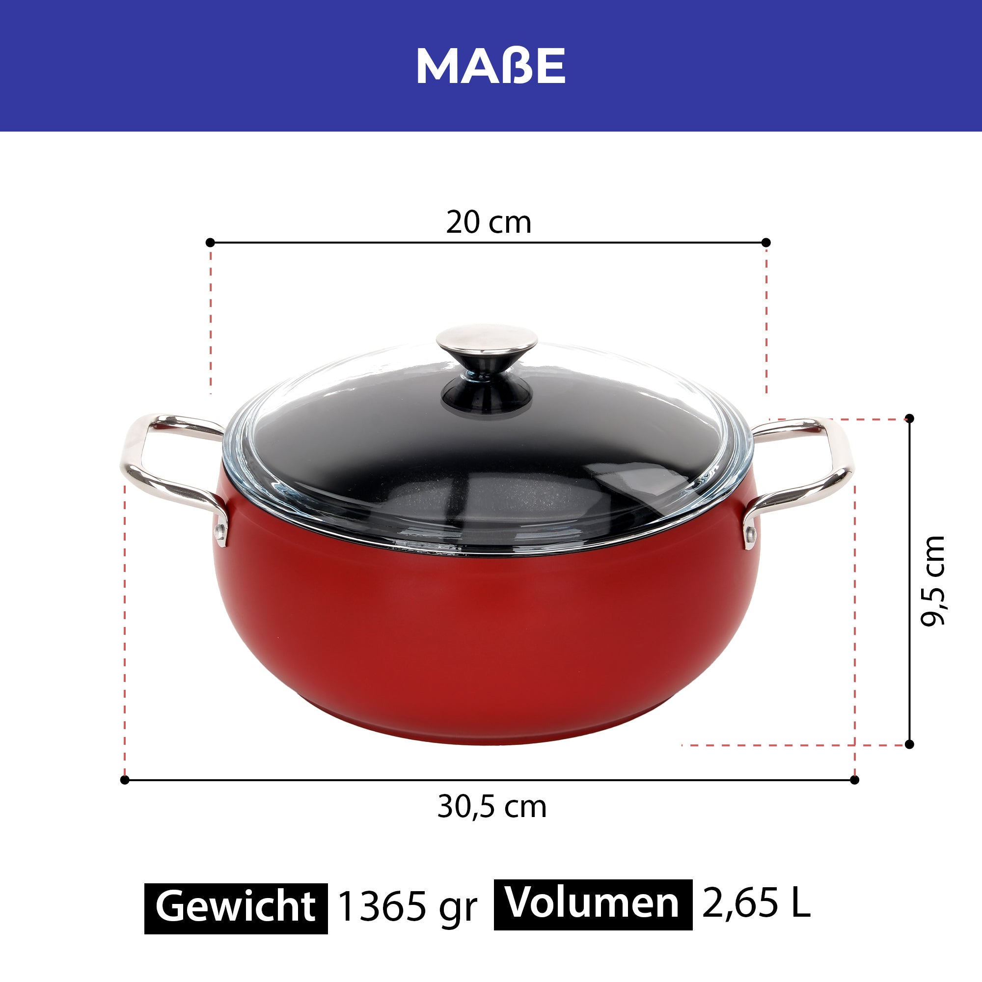 • 20 cm – Volumen: ca. 2,65 L