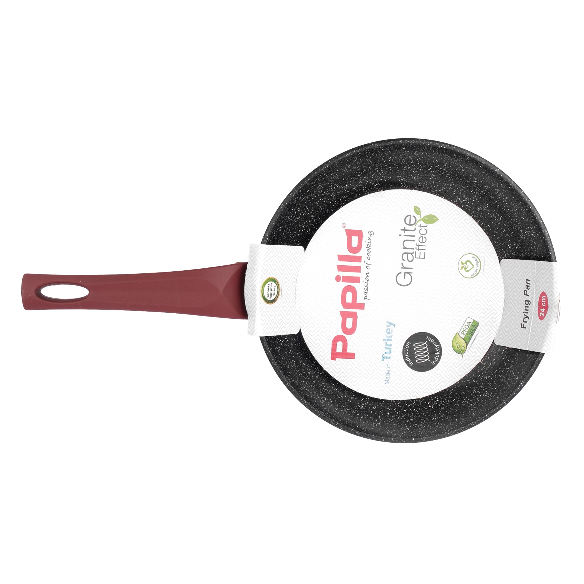 Der ergonomisch geformte braune Bakelitgriff bleibt auch bei hohen Temperaturen angenehm kühl, liegt sicher in der Hand und sorgt für maximalen Bedienkomfort. Der Induktionsboden macht die Pfanne für alle Herdarten geeignet und garantiert eine hohe Energieeffizienz.