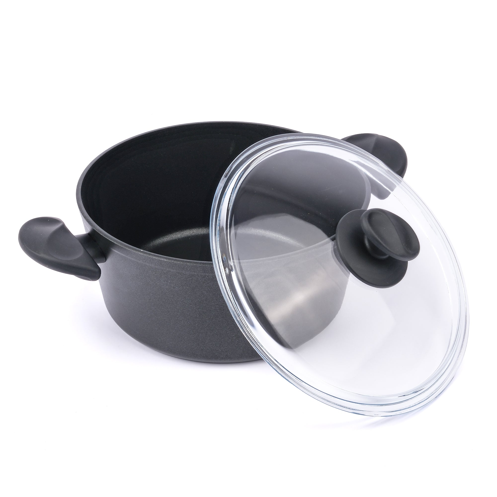 Die TITAN PLUS Kasserolle mit 24 cm Durchmesser überzeugt durch ihre hochwertige PTFE-Antihaftbeschichtung, den energieeffizienten Induktionsboden und den hitzebeständigen Glasdeckel. Ideal für gesundes Kochen, Schmoren und langsames Garen auf allen Herdarten.