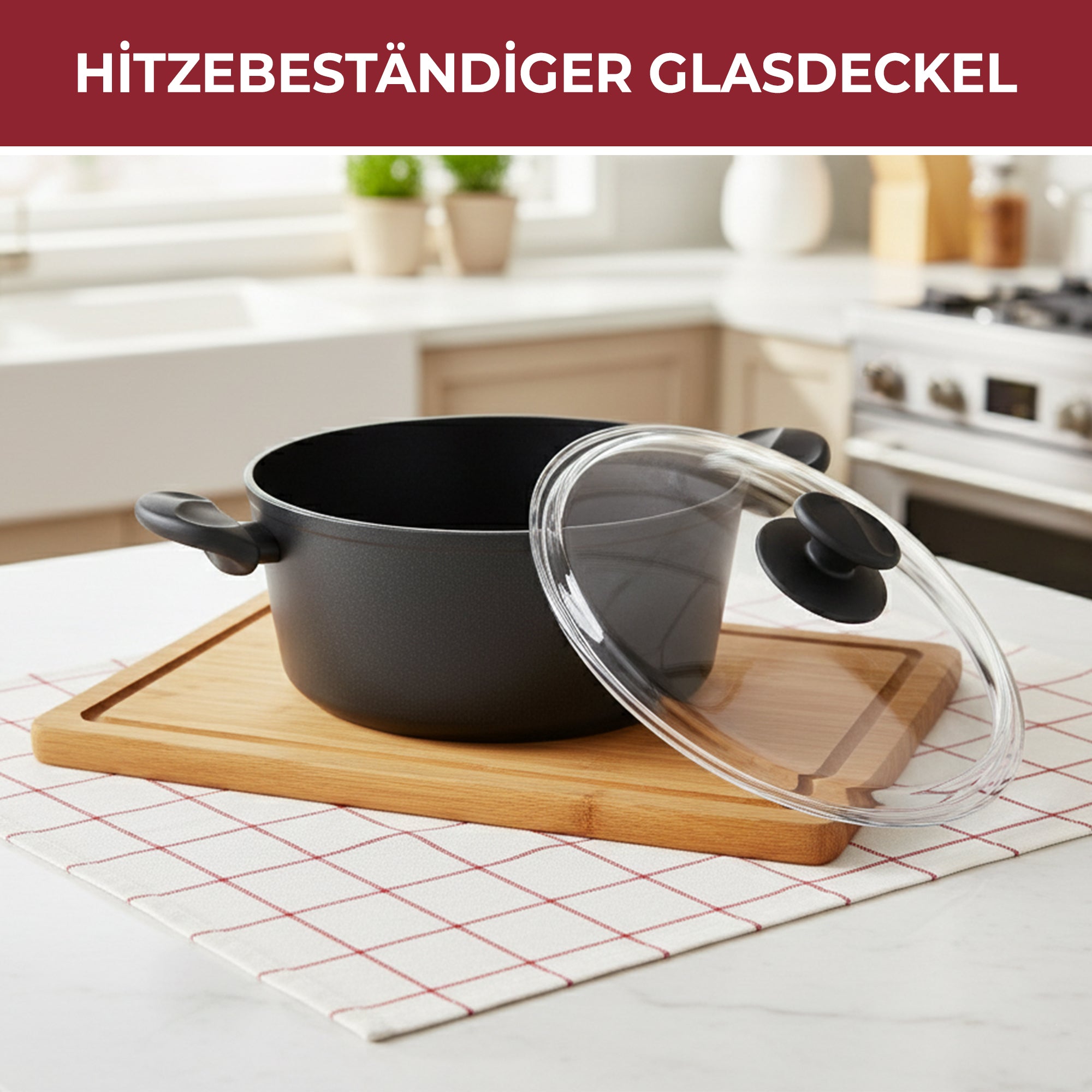 ✔ Hitzebeständiger Glasdeckel mit Sichtfenster